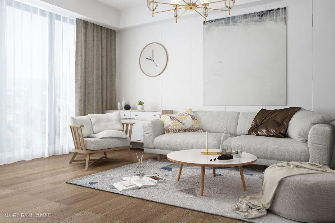 轻奢风格是一种设计风格,也是一种生活态度,它着力于表现简约、舒适、低调而内敛的生活品质,同时又不失高贵与奢华。地板原木色,灰色,胡桃色,白色(具体可以迎合家具颜色,统一整体视觉感受),既简洁明快,又便于打理,给人一种回归自然,清新舒适的感觉。
