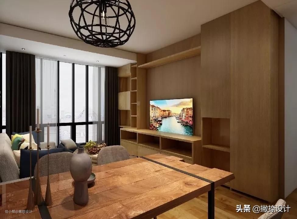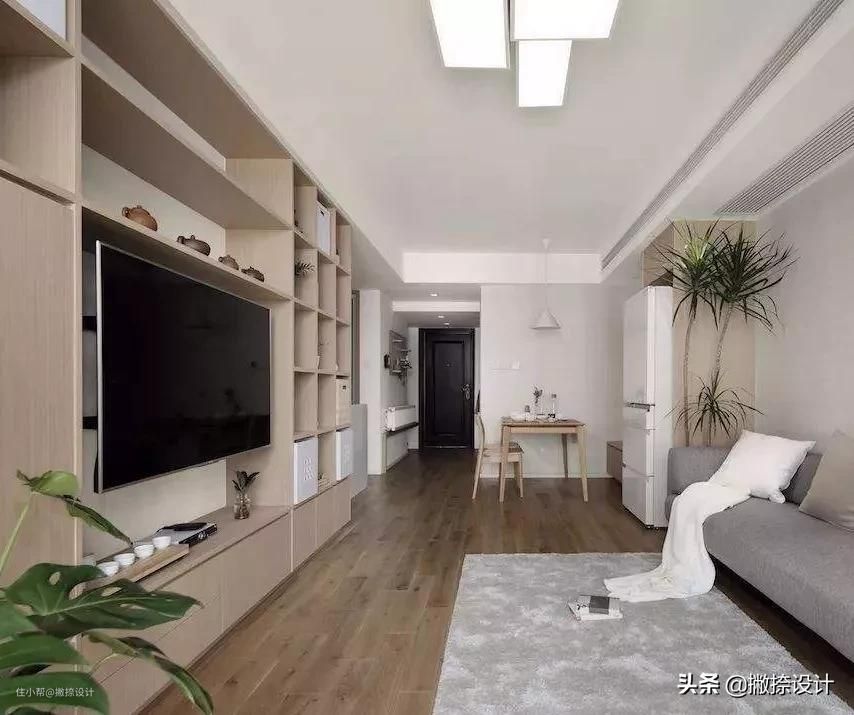 确定电视背景墙的长度和高度,通过测量墙体的长度和高度,同时考虑到扣除空调位置、吊顶高度,得出可以实际的可使用长度和高度,在决定电视墙家具高度的同时,也要想到沙发墙,用些装饰画等使两边平衡,达到整体效果。