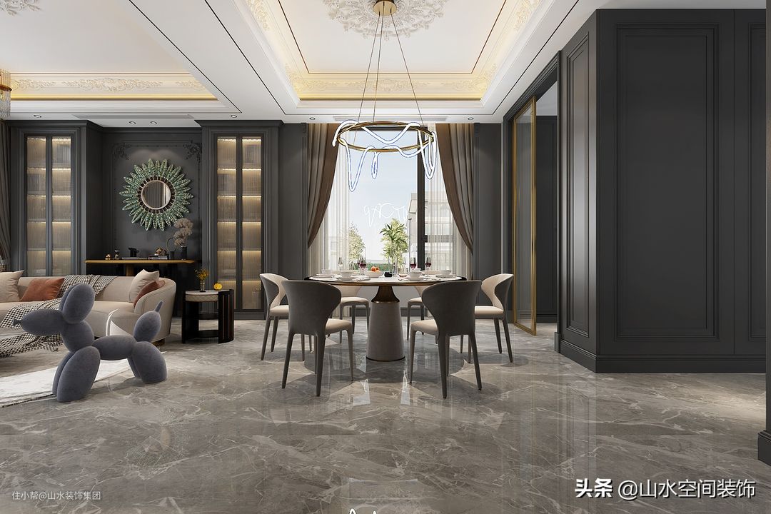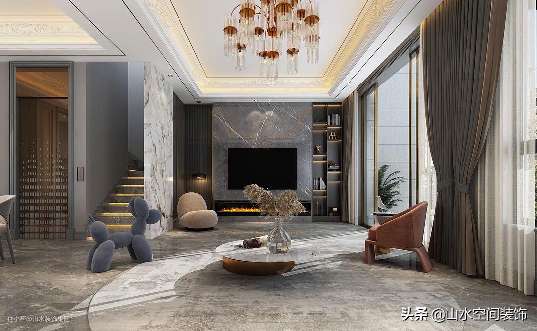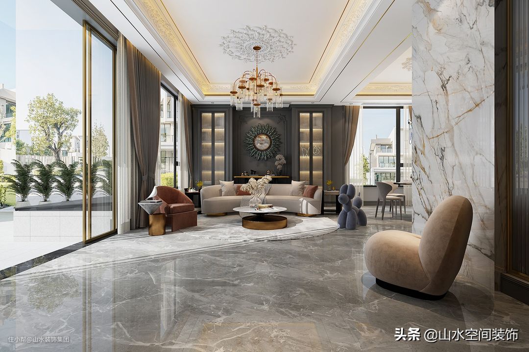 同学发来了他家新装修的别墅效果图,320㎡的轻奢格调,太美了