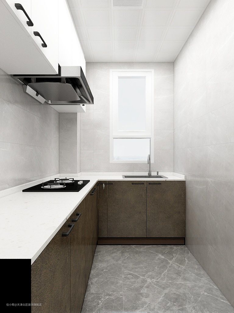厨房整体以白灰为主色调,整体满足洗切炒的基本使用,最大限度的提高厨房内的使用率。后期根据个人的需要添置常用的厨房用品与电气。冰箱外移之后厨房使用率得到一部分的解放。