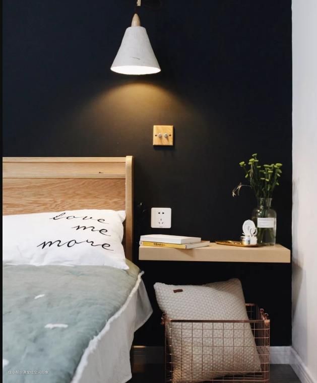 在床头安一两个壁挂柜或置物台,简单时尚,摆放一些书籍或装饰,文艺气息满满。