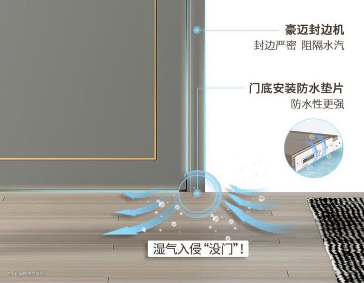 只有认准这项三维立体防潮技术,从内到外,底部全方位抗湿,你家的木门才能经受得住潮湿的考验。