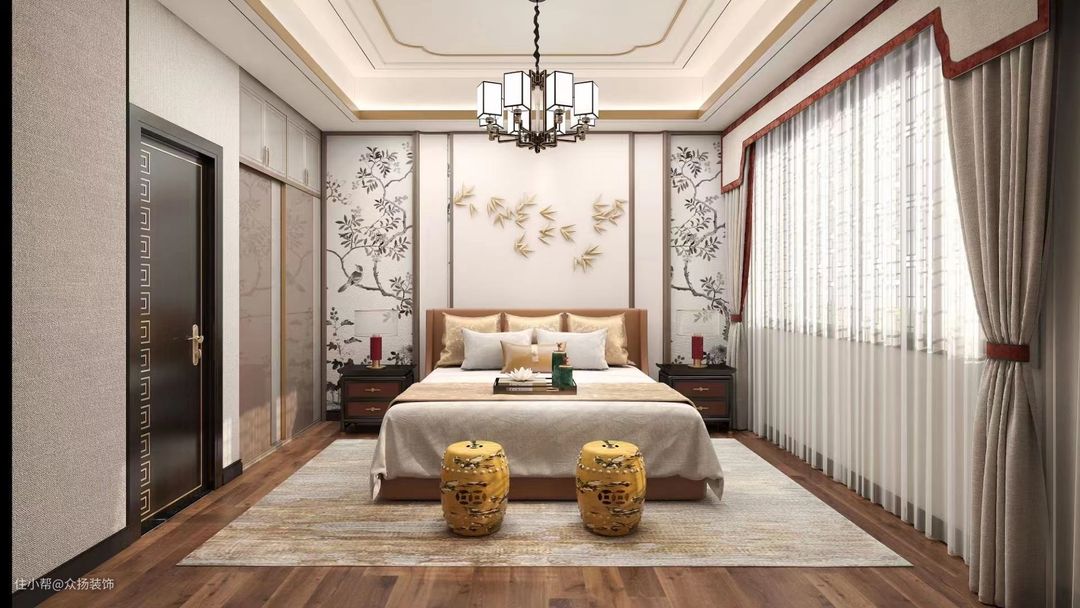 古风气息:新中式装修众扬装饰2021-09-28业主是一对气质非凡的夫妇,非常喜欢国风,同时也喜欢中式风格的空间氛围和鲜艳的色彩。我们以现代眼光的空间基调,融合了中式古风的装修色彩,追求现代性的简约雅致和古代的优美宁静,同时利用堆成的摆设进行装饰,利用中国风色彩元素的饰品点缀。