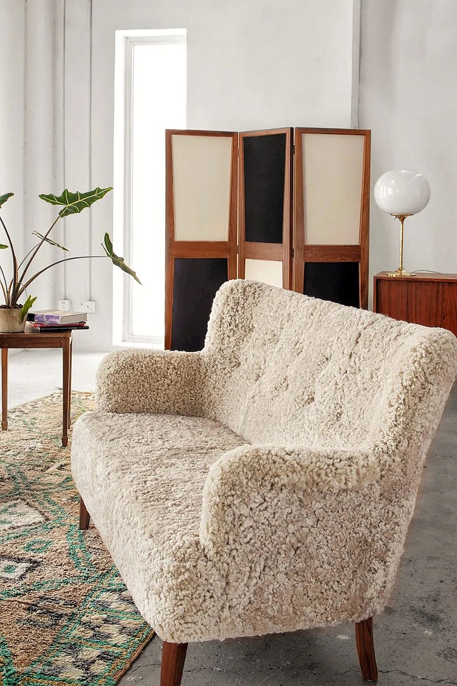 而羔羊皮是一种很特别的面料,目前世界上只有丹麦瑞典的几个品牌在生产这种沙发。因为这种面料大都是在中国生产的,我们今年也推出了,是典型的北欧风格设计。