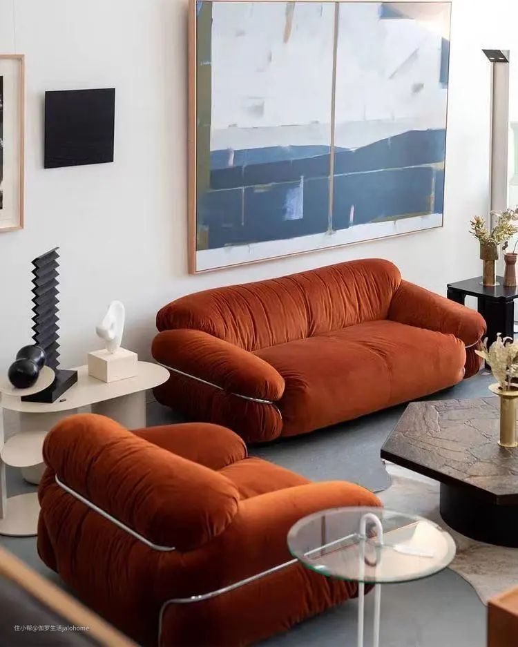 你在国外家居图片上看到的丝绒沙发,特别亮的可能是真丝丝绒。光泽感差一些但有静谧感觉的,一般是纯棉丝绒,或者纯棉跟黏胶等材质混纺的材料。