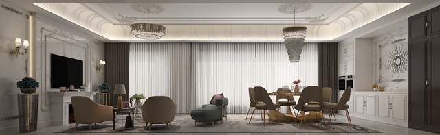 用精致利落的窄框线来勾勒出轻奢风的精致质感,省去繁复的线条层次,空间的立体感、轻奢感,将现代理念融入空间。
