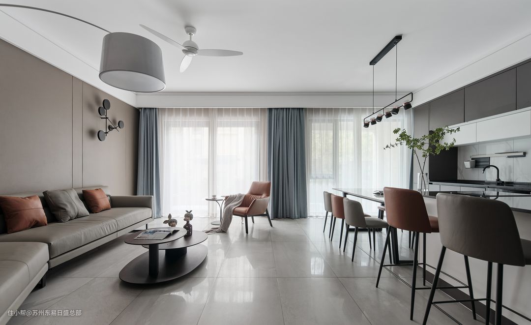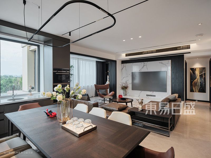 线条简单利落的现代简约风格,与窄框线相结合时给人一种豁然开朗的感觉,让原本略显单薄的空间呈现丰富的层次感。