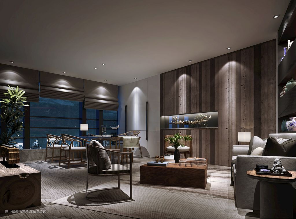 为了寻找到一处安静、舒适的场所,将办公区设置在地下室是个不错的想法。简单、大气,搭配无主灯设计,营造出十分良好的办公氛围。