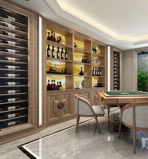 有美酒收藏爱好的朋友也可以将地下室设计为酒窖或者酒吧,在进行软装设计时考虑灯光要素,设计灯光角度与整体空间风格相映衬,突出空间的层次感和立体感,入目即是艺术之感。