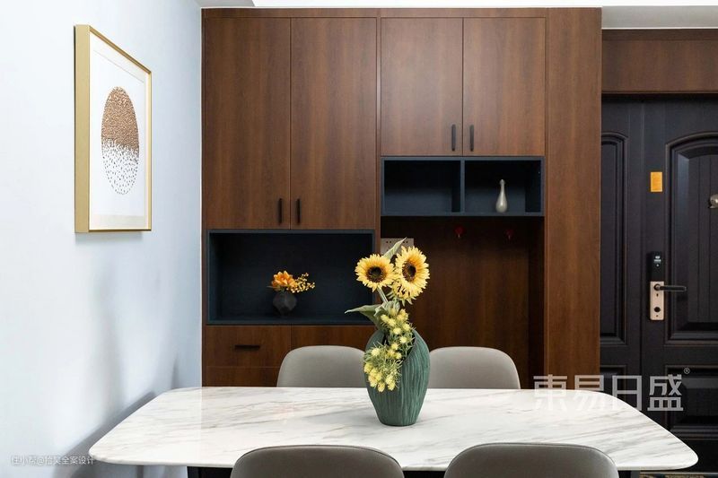 从入户进到室内,归家的美好从入户那一刻便呈现在眼前。改造后门厅增加储物空间,满足日常进出门的物品收纳和摆放。于此间卸下工作和奔波的疲惫,以最放松的姿态正式进入惬意的居家状态。