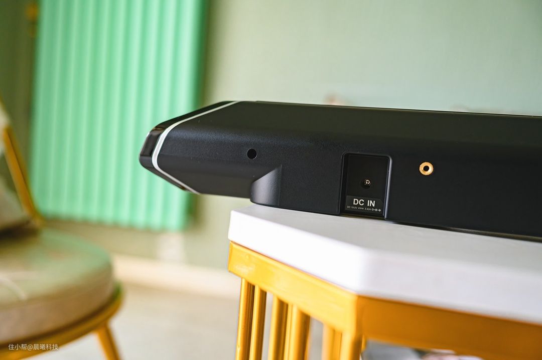 为满足大功率需求,供电设计为独立AC供电,除环绕音箱接口和适配按键外,旁边的USB接口尤为少见,它可为音箱进行固件升级。