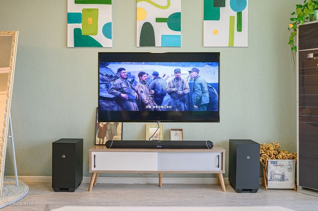中道ELITE 7.2.4 SSE 的搭建很容易,回音壁和电视通过HDMI/光纤连接, 两只无线低音炮接通电源后即自动适配连接,没有线缆约束,音箱的摆放位置几乎不受限制,电视前或者沙发两侧都可,结合官方提供的安装图解,第一次上手的小白也不会感觉困难,不需要把时间浪费在连接和调试上。即使家里有小朋友也不用担心电源线太多,存在安全隐患问题。