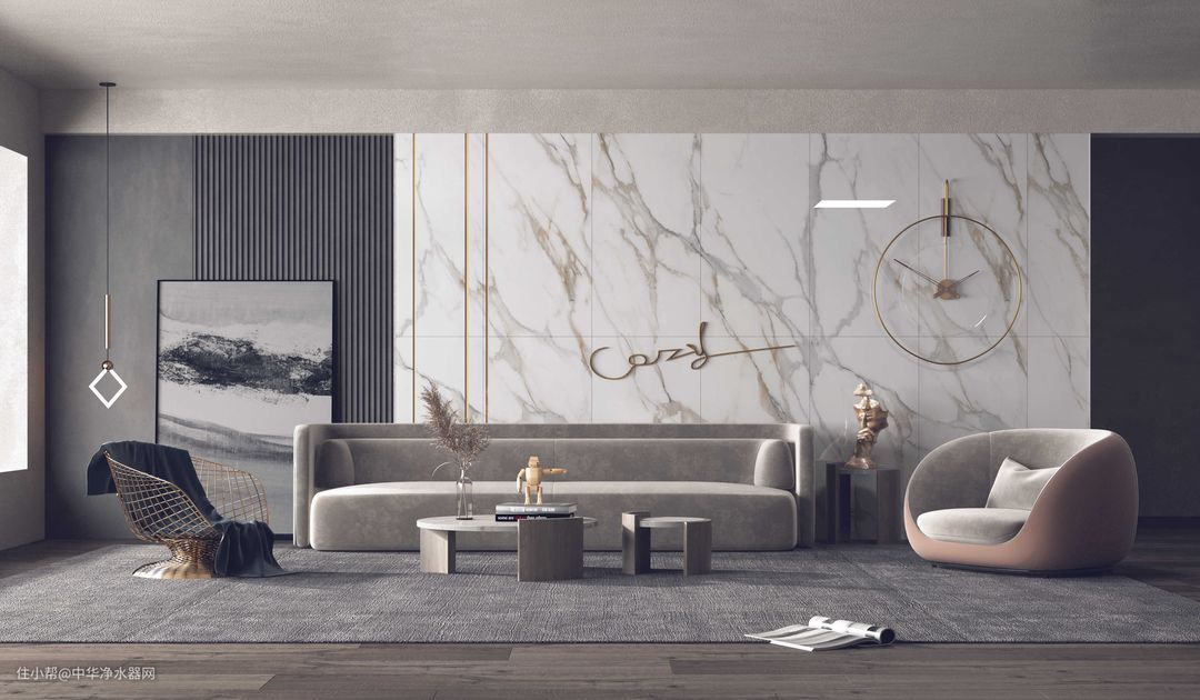 在现代装修风格中,大多数家装都会用到仿大理石板贴在电视机墙、沙发墙当作背景墙,简单大气又非常美观。