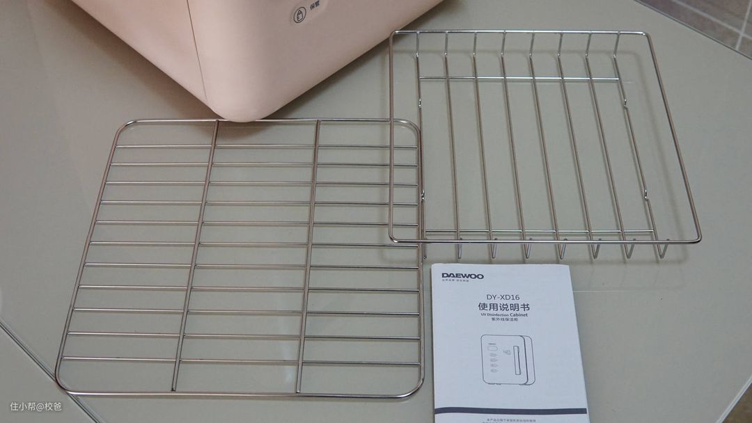 赠送了两个不锈钢网架,使用的时候,可以分层放置宝宝的奶瓶、餐具等。