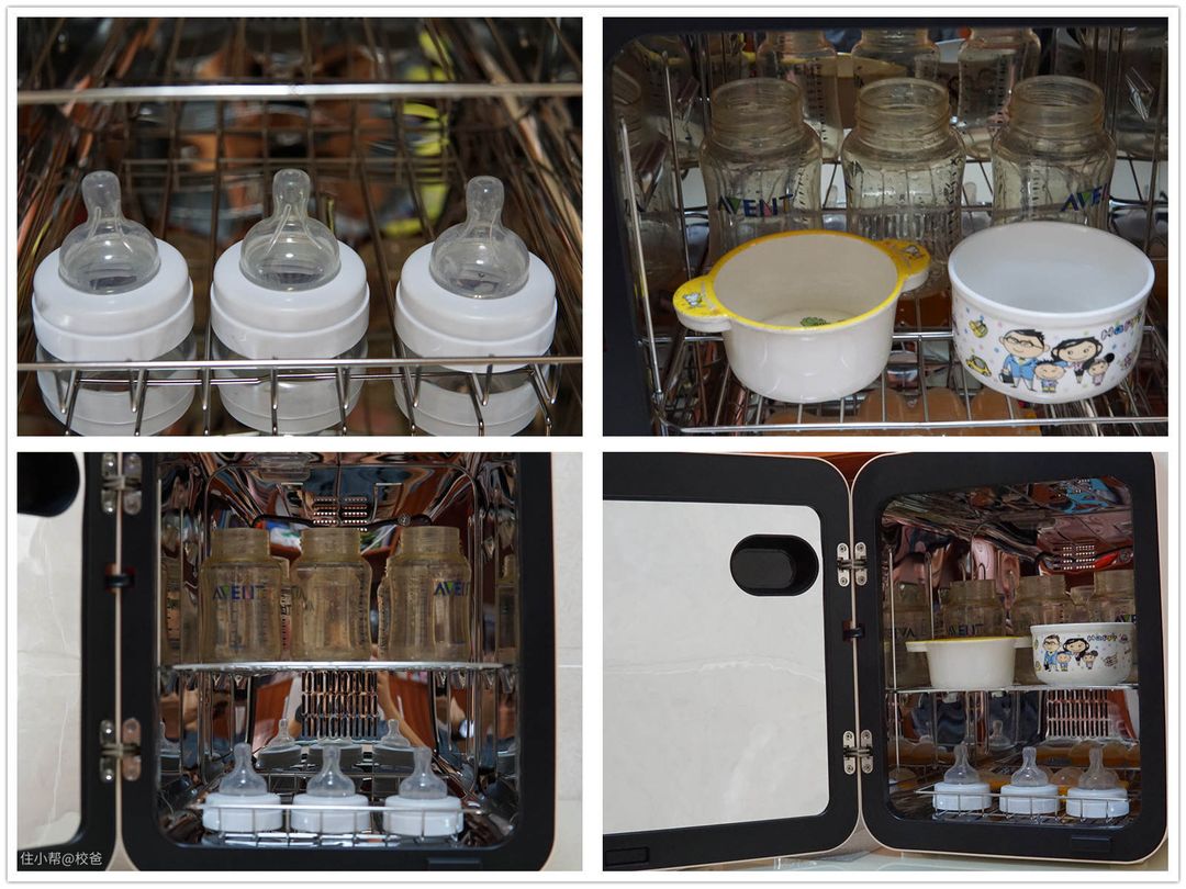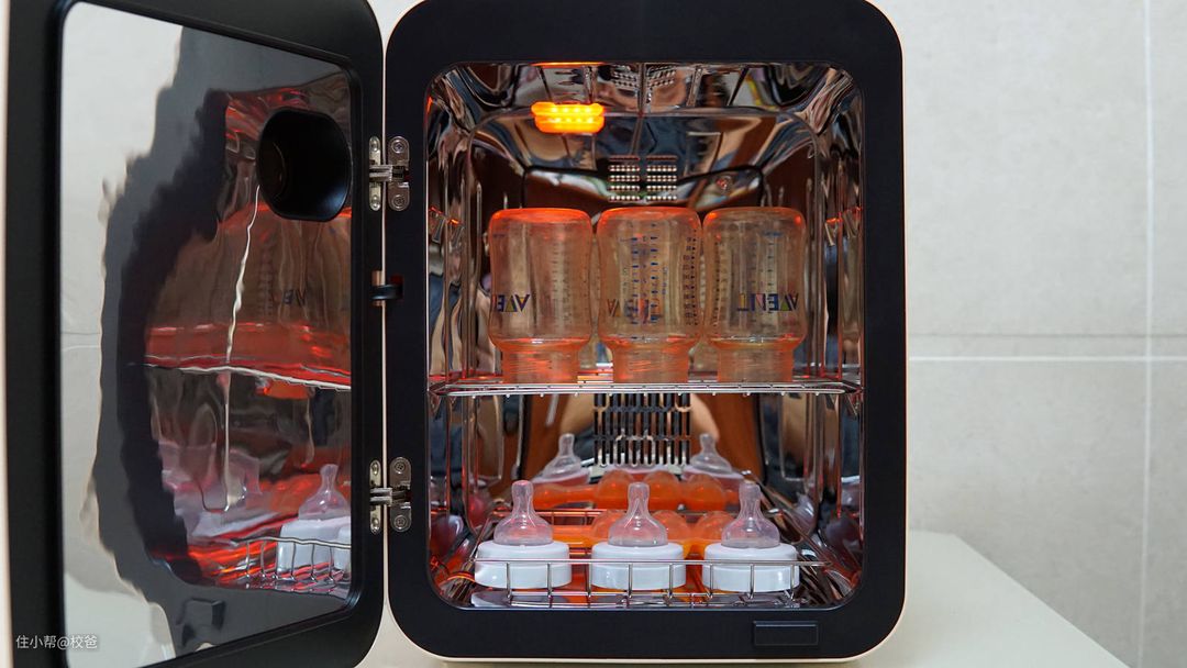22L黄金大容量,不锈钢网架分层放置,最多可以放置下12个奶瓶奶嘴或者12套儿童餐具。对了,还能将宝宝一些衣物放在里面进行烘干消毒,一柜多用,满足实际使用需要。