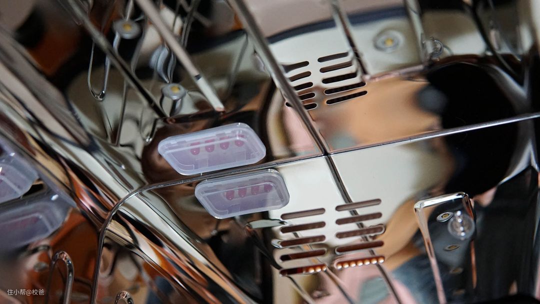 在消毒柜的顶部,内置了4颗红外线灯,方便夜间存取物品,细节之处也没有忽视。