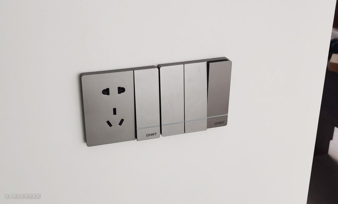 比如很多人喜欢白色墙面用金色开关插座,这样其实并不好看,显得很突兀,白色墙面正确选择是选白色开关插座才是最好看的,让开关尽可能融入到墙面中才显得美观,如下图所示,白色开关很好的融入墙面,灰色开关太显眼。