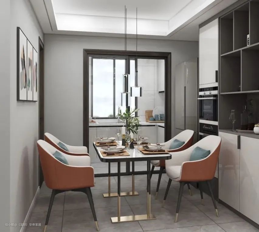 多元化的生活习惯已经影响到了我们的家装设计,中间留出操作台,拿取顺手,这样的设计不仅是餐厅里独特的风景线,还能分担了厨房的部分功能,使用起来也更加便利。