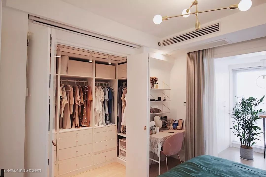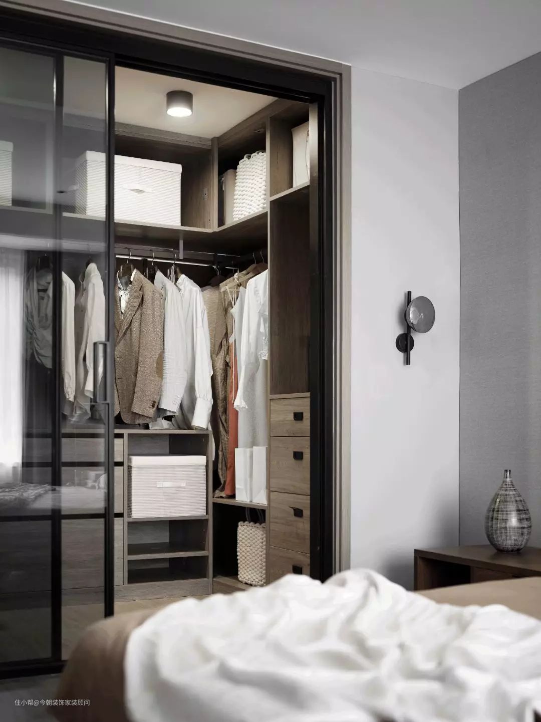 卧室空间小,也是可以拥有属于自己的独立衣帽间。其实最小的独立衣帽间仅不到3m²,不需要太多的空间。