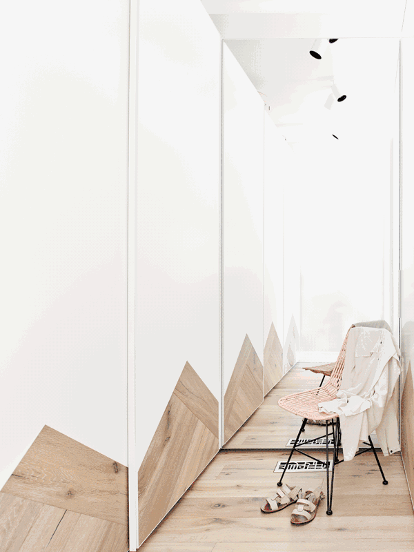 对于小LOFT来说,楼梯下斜斜的空间一般用作储藏室太过可惜,它可是绝佳的改造位置。稍微用点小心思,就能拥有一个别有洞天的衣帽间哦!