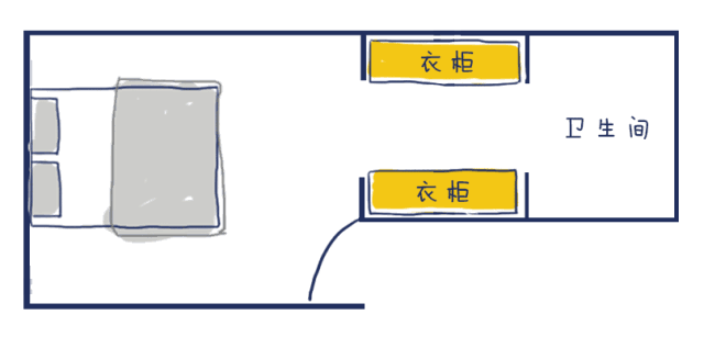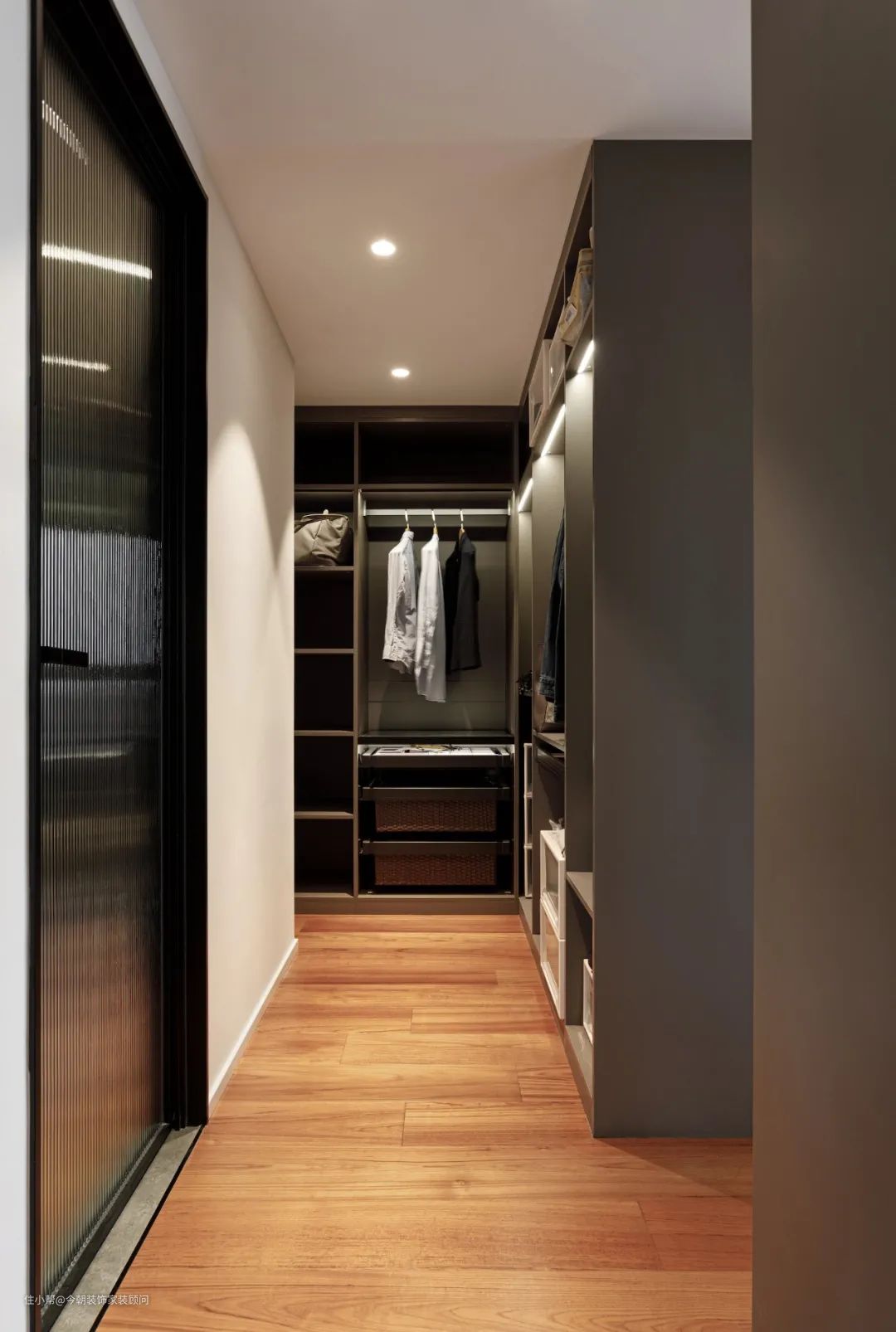 有些方形比较特殊,进入房间后会有一段走廊。将卧室门口的过道利用起来,每次进入房间,都会经过自己美美的衣橱。