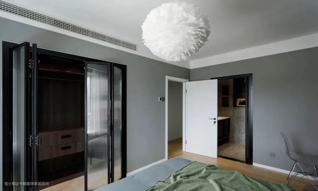 你可以选择更改门的位置,改变进入卧室的方式。将衣帽间设计在卧室里,更具有私密性。将衣帽间设计在卧室外,则更像家人共用的区域。