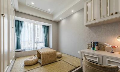 把空间分隔成两层使用。上面主任,下面改成衣帽间。将衣帽间设计在上下层均可,预留高度最低2m。