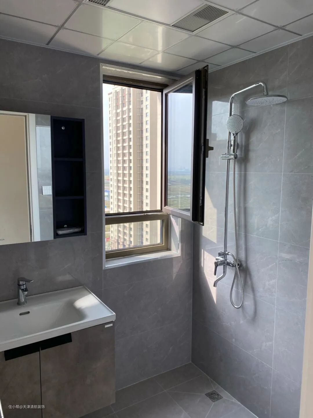 卫生间空间很小,没有干湿分离,不影响使用。虽然空间紧凑一些,但是在哈有一个独立的卫生间还是挺好的,安装了一个非常实用的柜镜,可以适当增加一些收纳空间。太棒了!