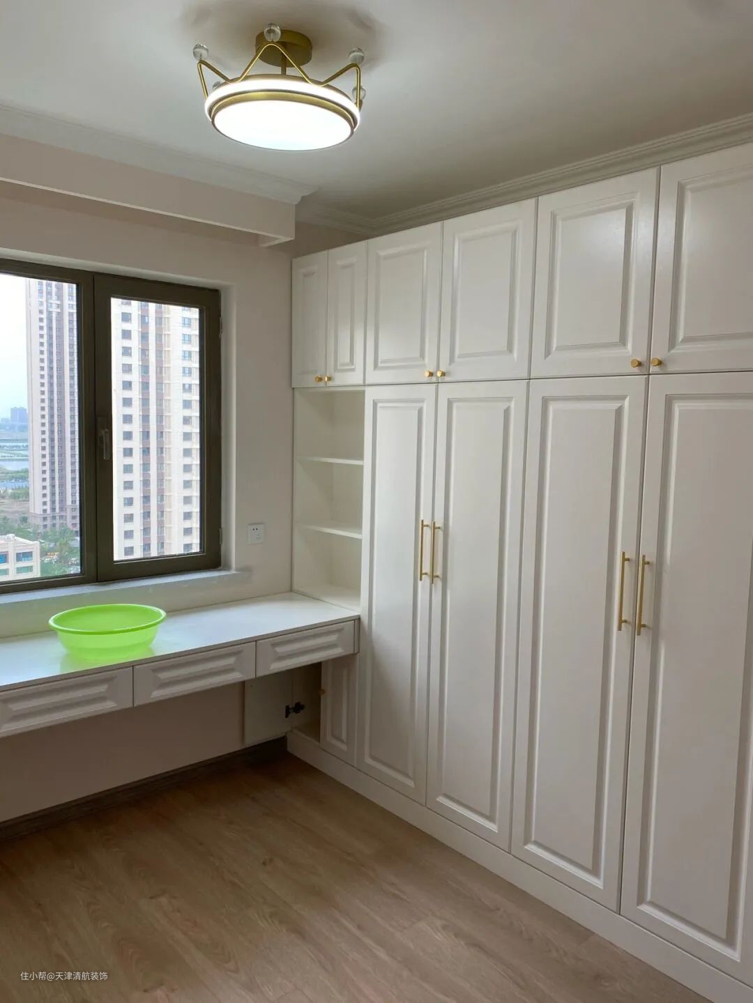 第二间卧室利用窗户的位置设计了一个抽屉柜,可以当书桌使用。它只是利用了空间,有设计感。结合衣柜,比较大气,真的很喜欢。靠近窗户,光线很好。