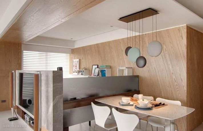 吧台是餐桌,也比较适合小户型餐厅,我们可以在餐厅的靠墙处,设计一个长条形的吧台,就像部分面馆那样的设计,一家人坐一排用餐,完全能够满足3口人之需,甚至四个人都能坐得下。