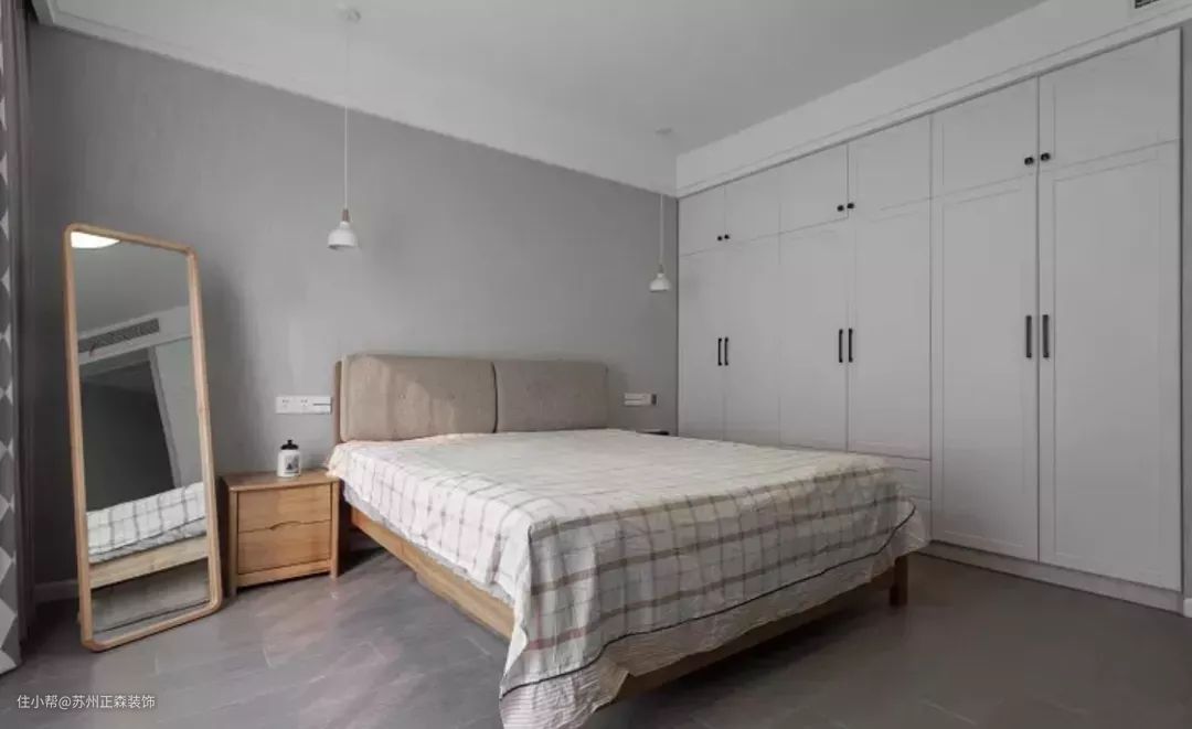 收纳也是卧室的一个重要需求,小型卧室的收纳主要靠衣柜,利用墙面设计推拉式、平开式的嵌入型储物衣柜,满足收纳要求,也好看整洁。