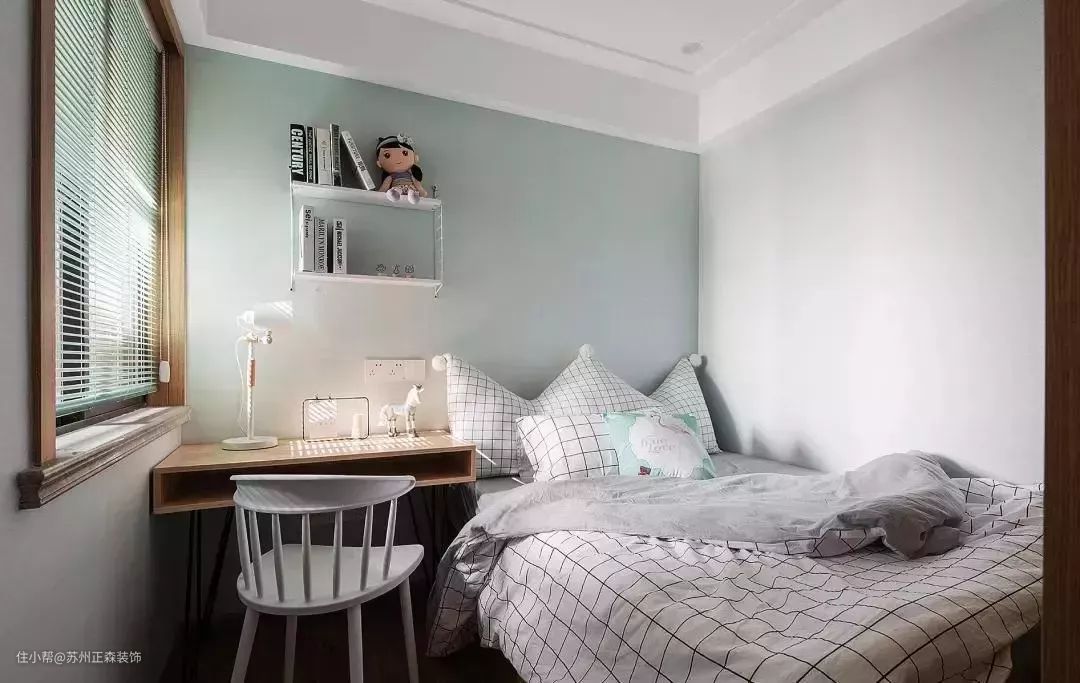 做些合理的利用,比如有飘窗设计的可以将化妆台、学习区、休闲区布置到飘窗区域,或者是将衣柜和化妆台一体式设计,正确规划更省空间。