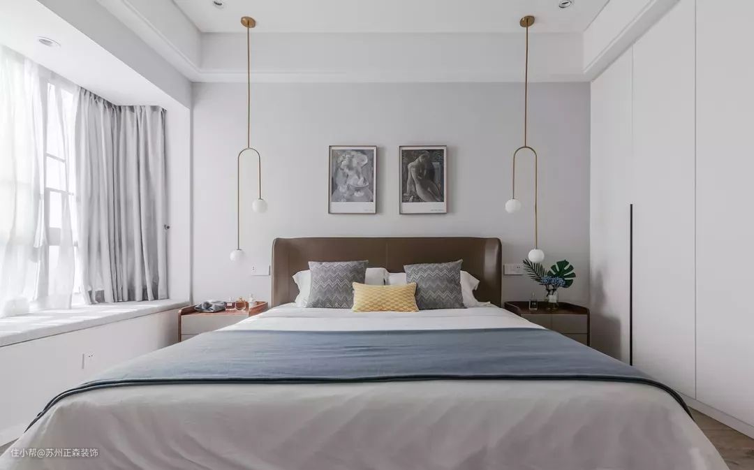 卧室设计布置讲究舒适轻松,大面积的卧室房间可以分区域设计,但对于小户型来说,合理规划布局,实用又不多占据空间才是王道。