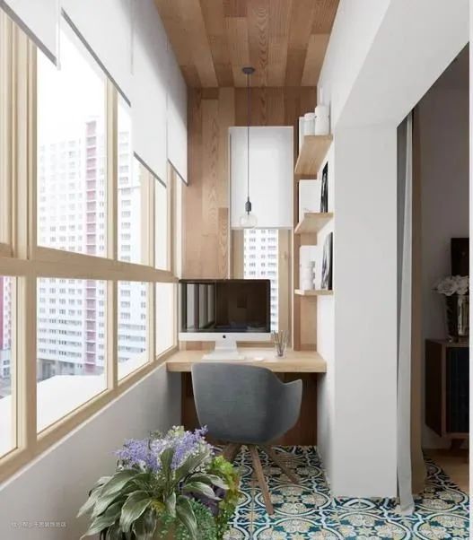 2、阳台通常朝阳,光线就会很强,这样朝北的阳台设计成书房可能是一个不错的选择。
