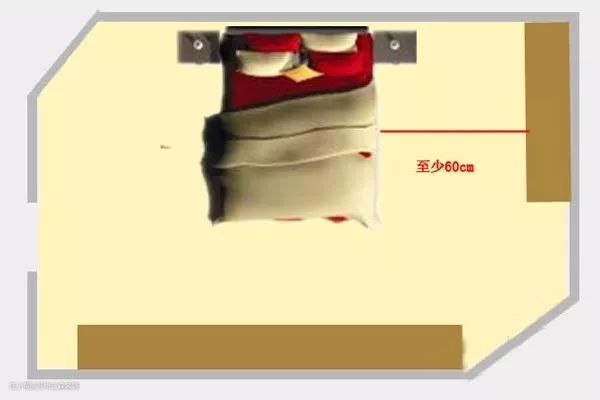 (3)床架、衣柜、斗柜建议分散摆放在三面墙,躺下床的时候看不到衣柜角这样的距离和高度就差不多了,距离约在5750px以内。