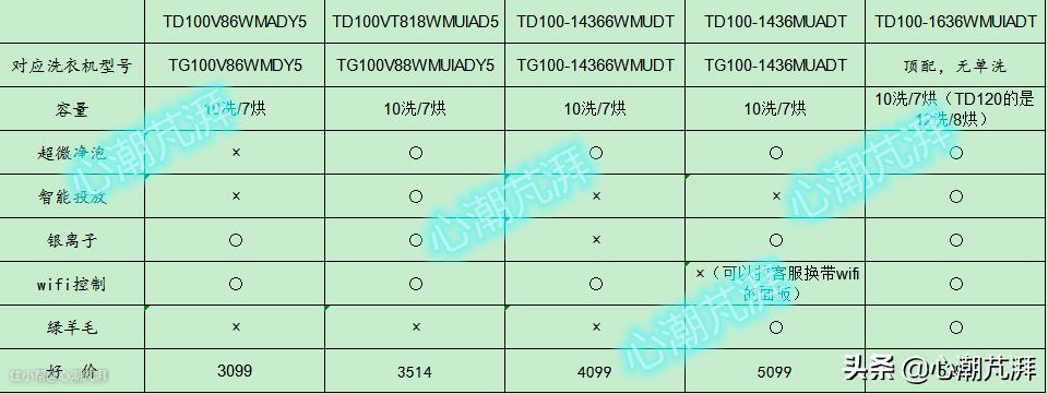 ▲其实这个价位段平价能打的单洗“神机”有四款,分别是V86、V88、14366和1436(其余14266以及Q366是老款,推你的柜姐不是蠢就是坏),他们彼此的区别我前面文章说过,后面我讲到的时候也会提。然后这四款也都有自己对应的洗烘一体机,型号比较绕,看下面这个图吧。。