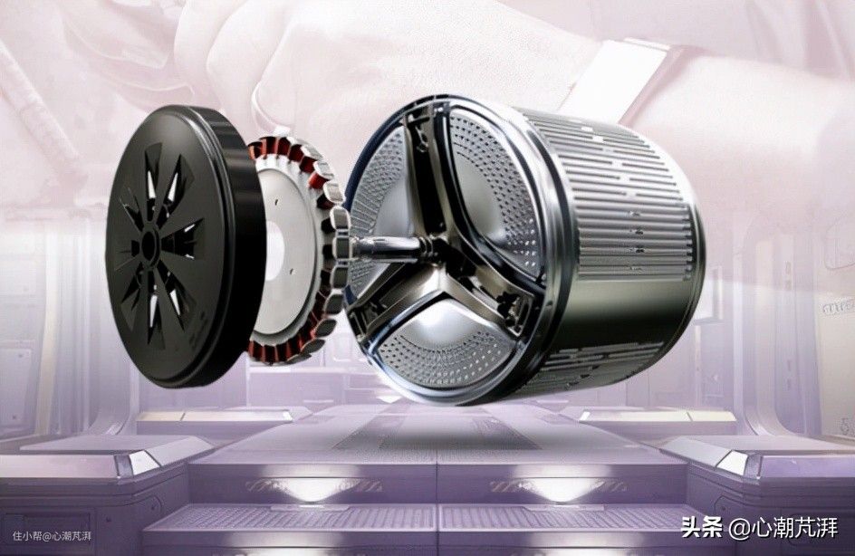 ▲至于DD直驱指的是传动方式,而不是电机类型。相较于BLDC(非直驱),DD直驱电机是电机在滚筒后部直接驱动滚筒,不通过皮带,也就少了皮带传动的噪音和可能的不稳定。