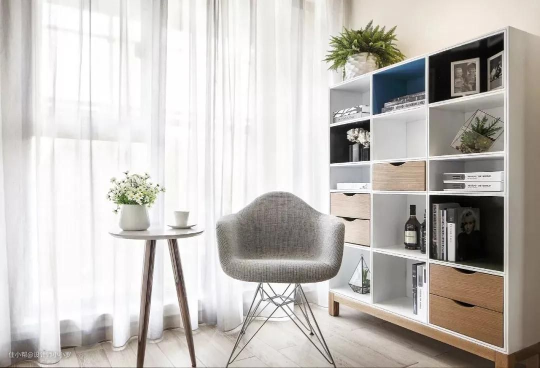 想拥有书房的盆友们,阳台也是个好选择,纳入客厅后,阳台也可设计阅读角,提高客厅阅读氛围。