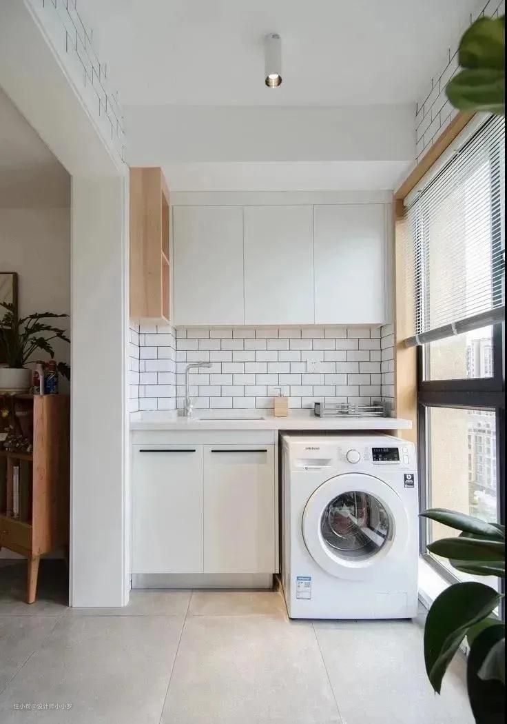 ①阳台一侧可设计洗衣区,与洗衣池、洗衣柜结合设计。