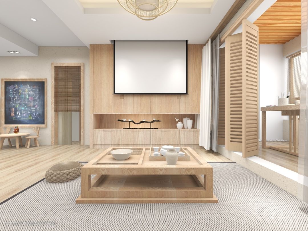 客厅有着浓浓的日式风格,原木色的地板搭配原木色的护墙板,加上简洁的窗帘,灯饰,地毯等软装,舒适又有灵性,明快活泼。