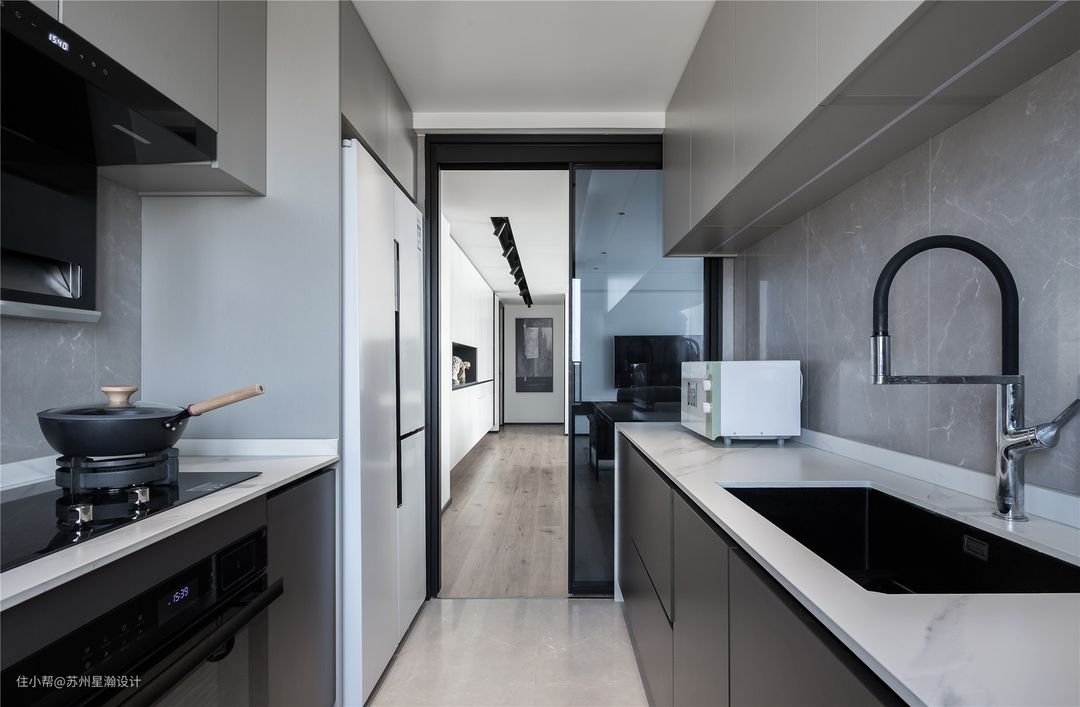 可以对使用的区域进行功能分区,比如左边洗菜右边洗肉类,洗碗时左边洗右边二次清洁等,特别是对于洗菜有浸泡习惯的人群来说,双槽的单个容量更小更节水。对于空间比较大的厨房,搭配大双槽看起来更美观漂亮。