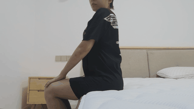 边缘部分坐立测试,可以看到无论是起来还是坐下,床垫都能提供非常好的局部支撑,并且包裹良好,响应快速。