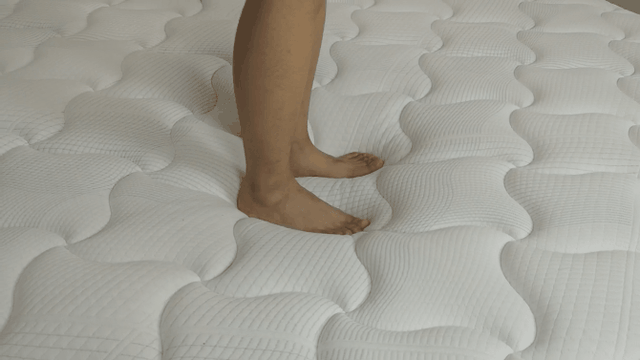 按压测试,实测这款床垫在讲究透气性的同时亲肤性也特别好,在给你非常舒适柔软度的同时,却不会完全的塌下去,回弹迅速,这就是超厚的泰国乳胶和深睡能量弹簧共同加持下带来的效果,三个字,非常棒。