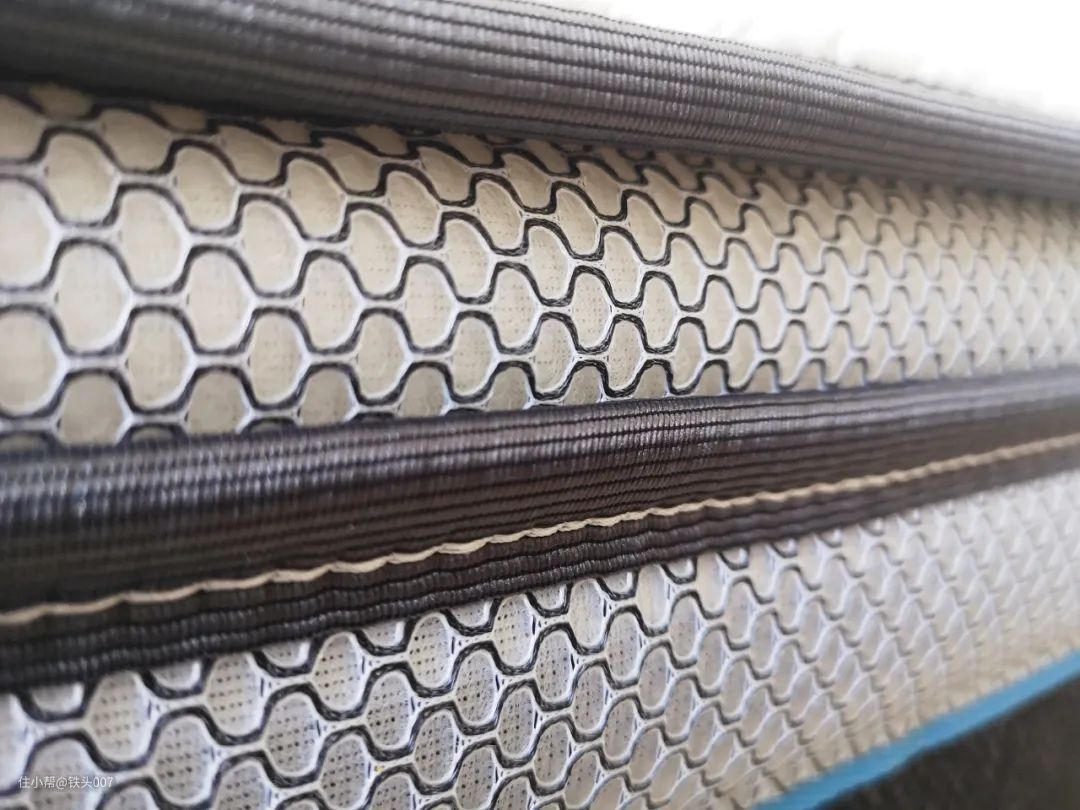 侧面一周均为这种双层的3D透气网布,立体中空的设计可以很好的保持内部的空气流通,始终保持床垫的干爽透气,号称是一款会呼吸的床垫。