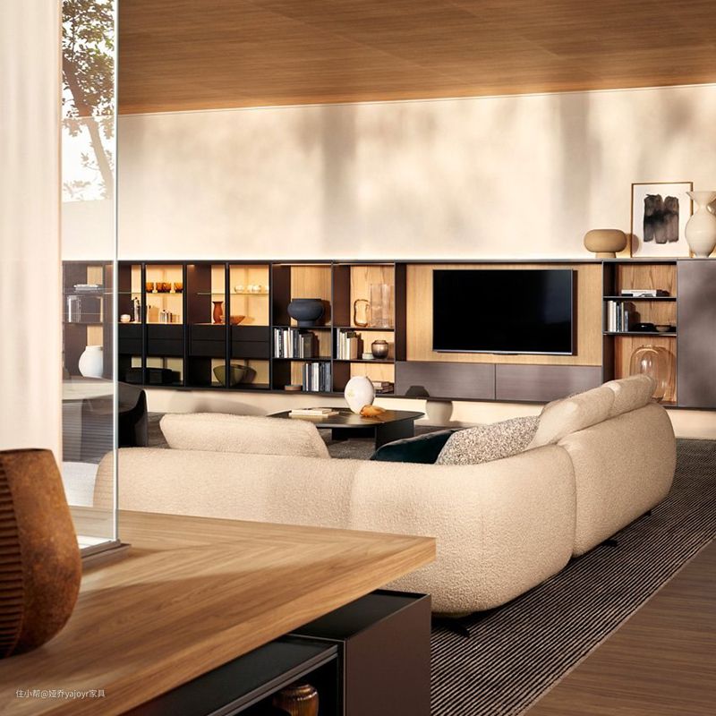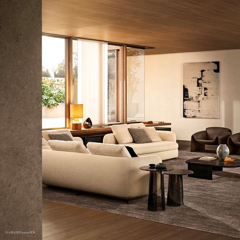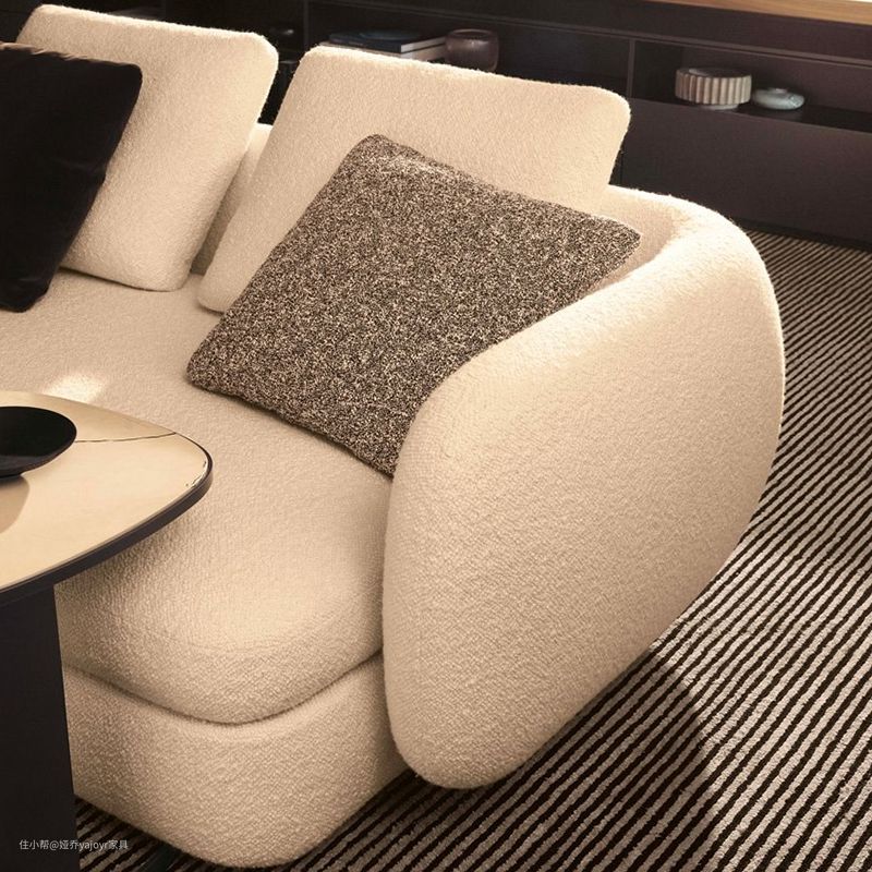 直线型沙发,L型配置,或不同模块的组合,柔和的羊羔绒面料,增强了整体的饱满感和丰满感。