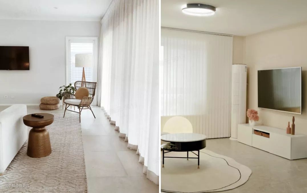 因为大家想明白了:客厅是用来活动的,一层白纱既能确保隐私,还能让阳光充分洒进来。