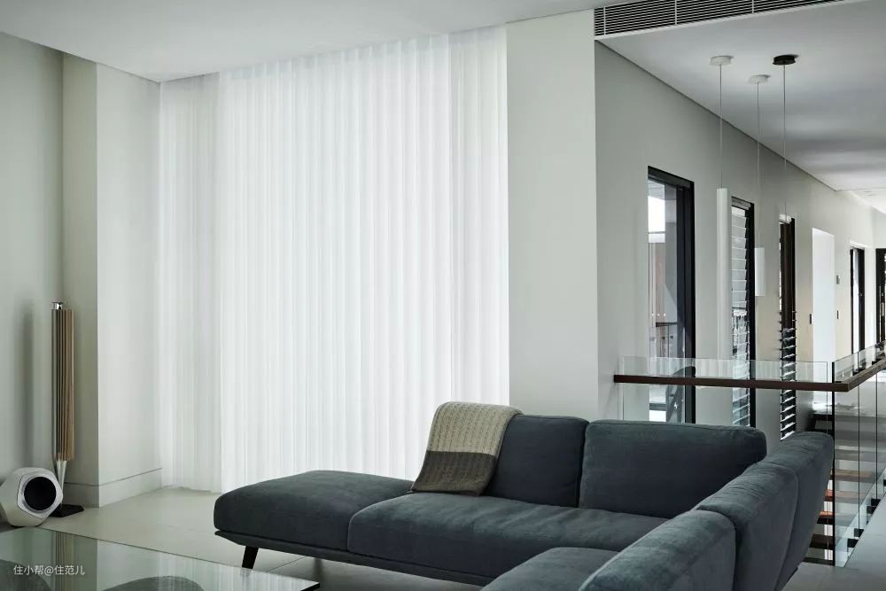 现在的客厅非常流行只安装一层白纱帘,抛弃传统厚重的遮光帘。