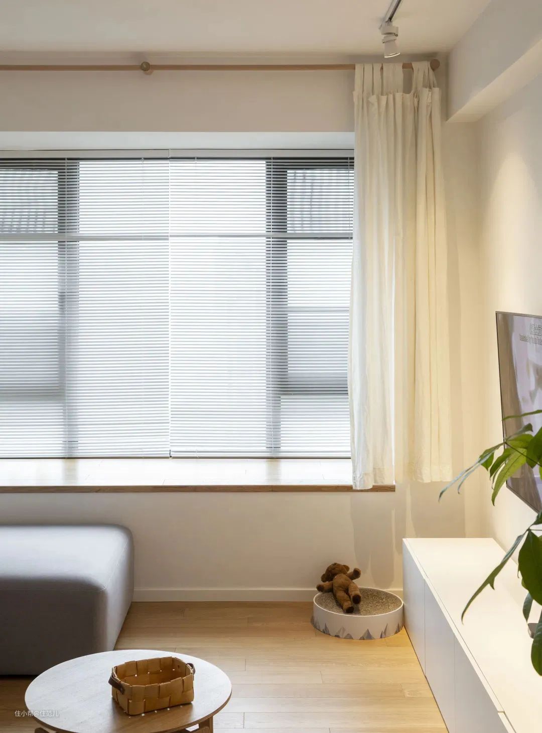 当然如果你不想舍弃白纱,也可以靠窗用百叶窗,内部用白纱,这样会更有层次感。