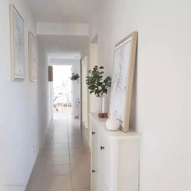 家里户型有一条长长的过道,可以摆放一个小矮柜,矮柜选用薄一点,起到装饰作用,同时也增加一点收纳空间。