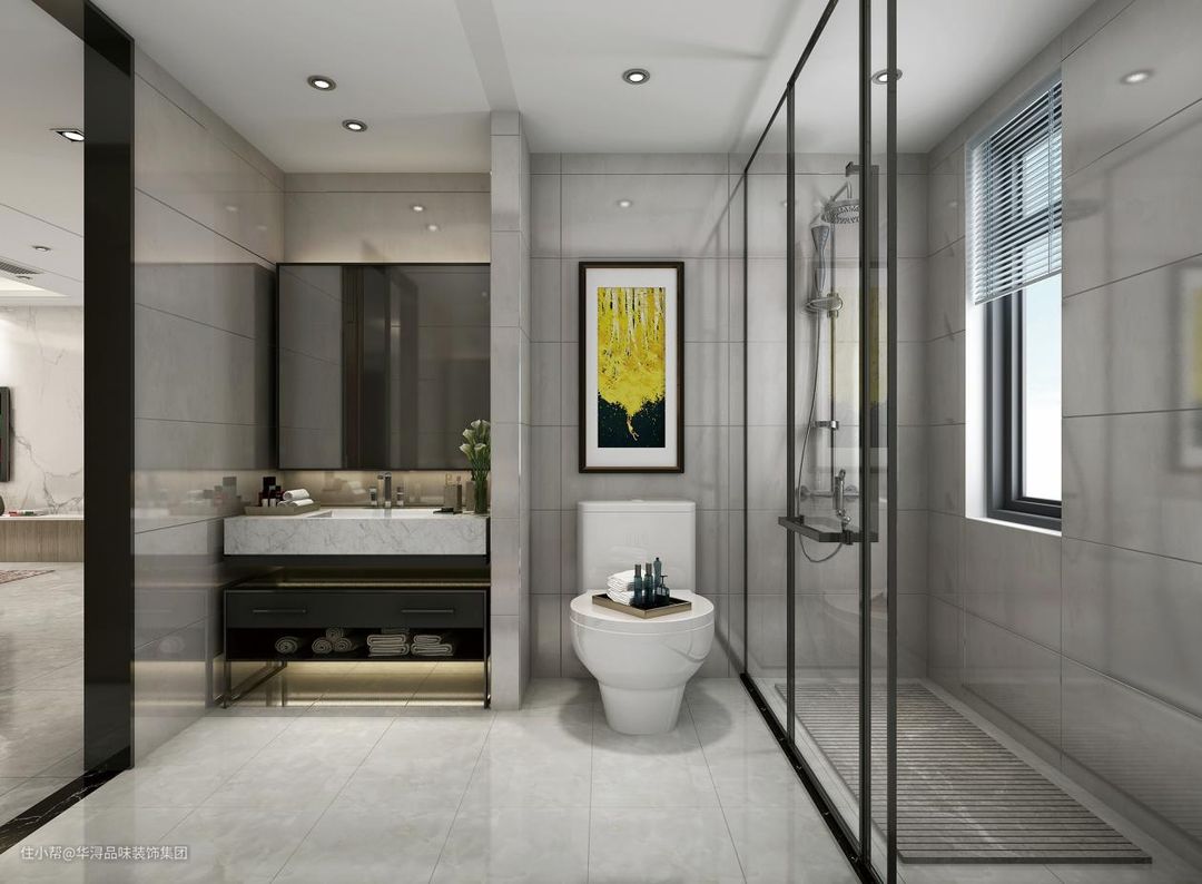 卫生间设计干净整洁,通过一段短墙将盥洗室同其他的区域分离开,使用效率更高,也在心理上给人更干净更卫生的感觉。